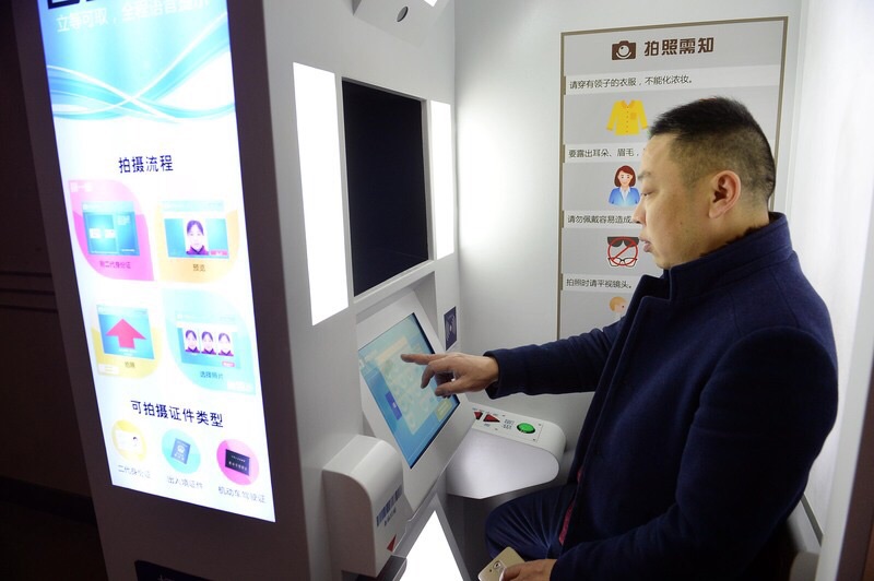 1. 群眾通過閱讀粘貼在機器外面的證件照片拍攝指引,機器正面有梳妝鏡,整理好發型、頭飾、衣服,然后進入拍照機內。